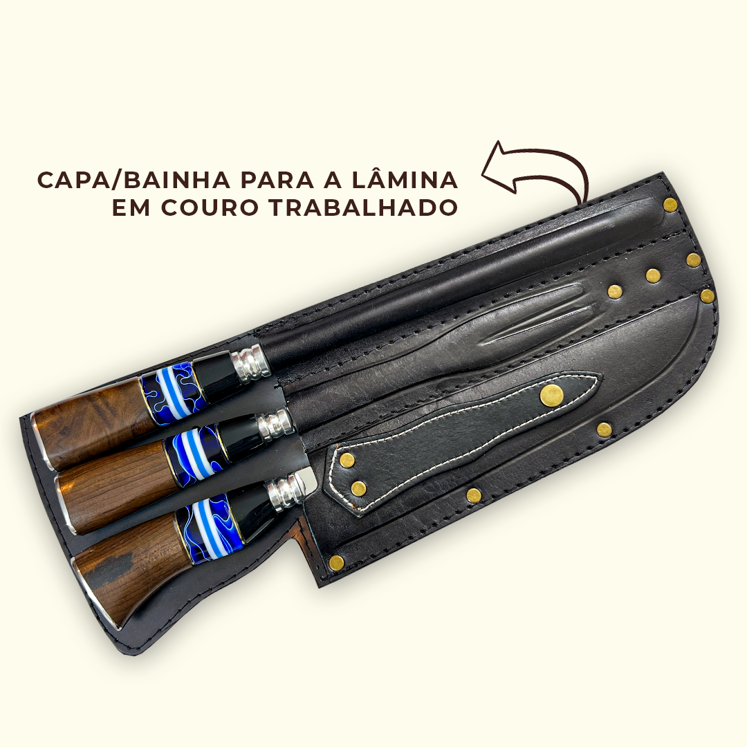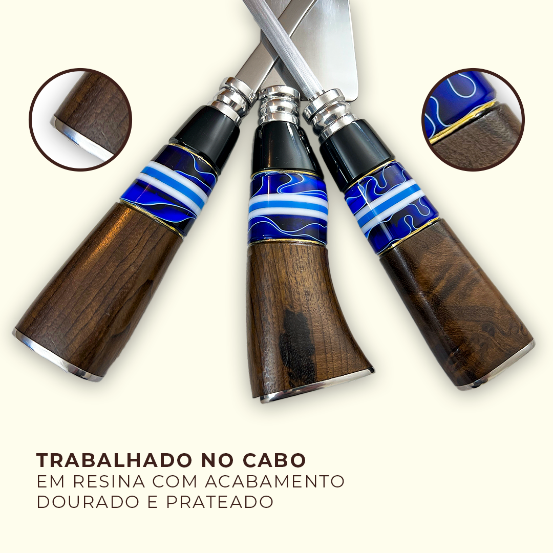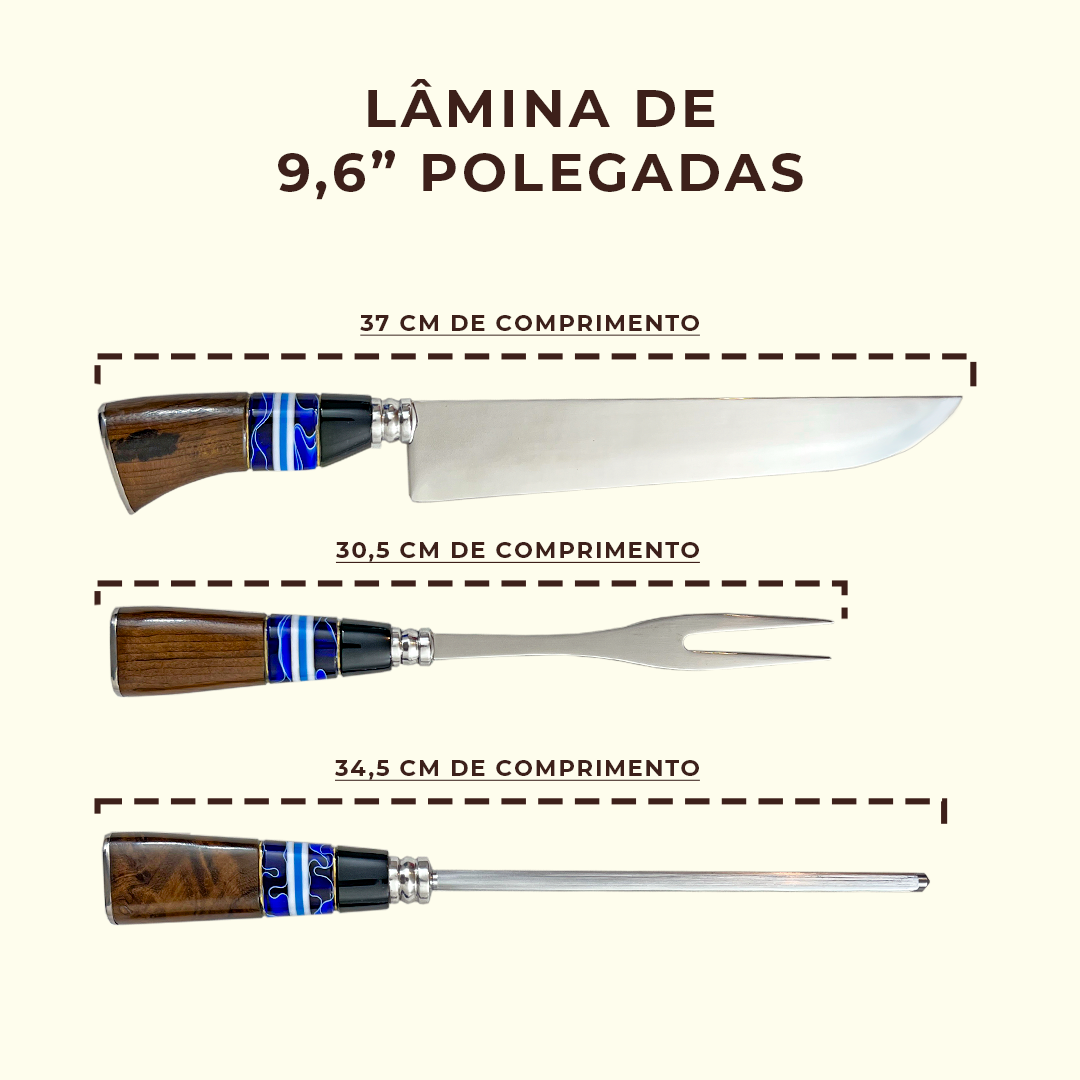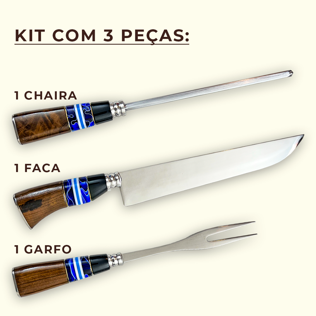 Kit Churrasco Faca + Garfo + Chaira Aço Inoxidável Premium