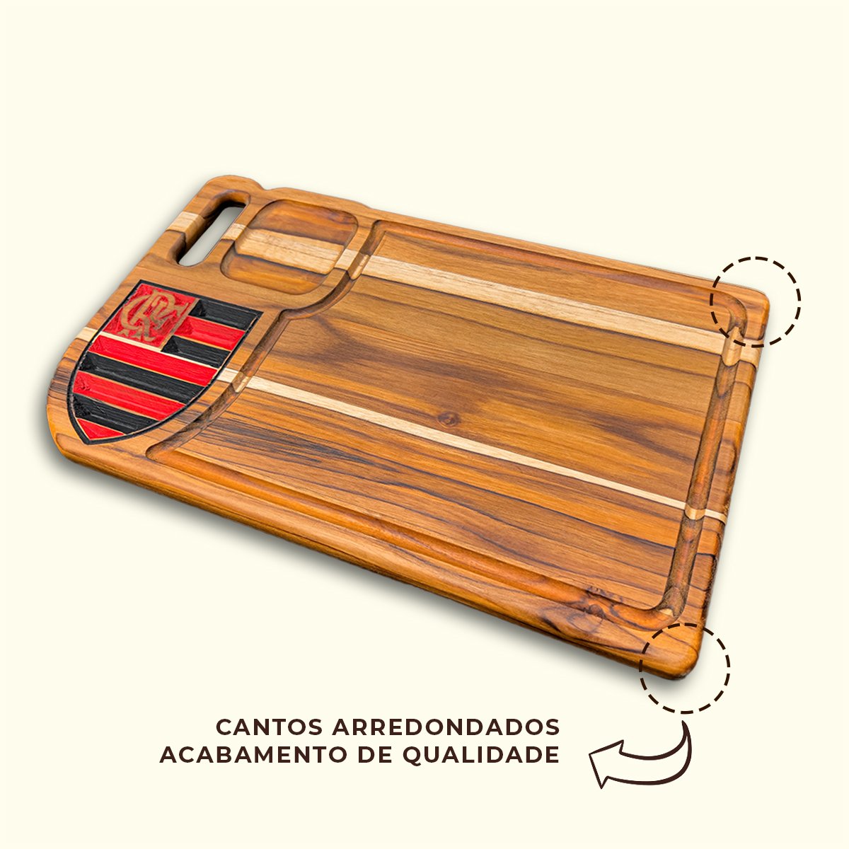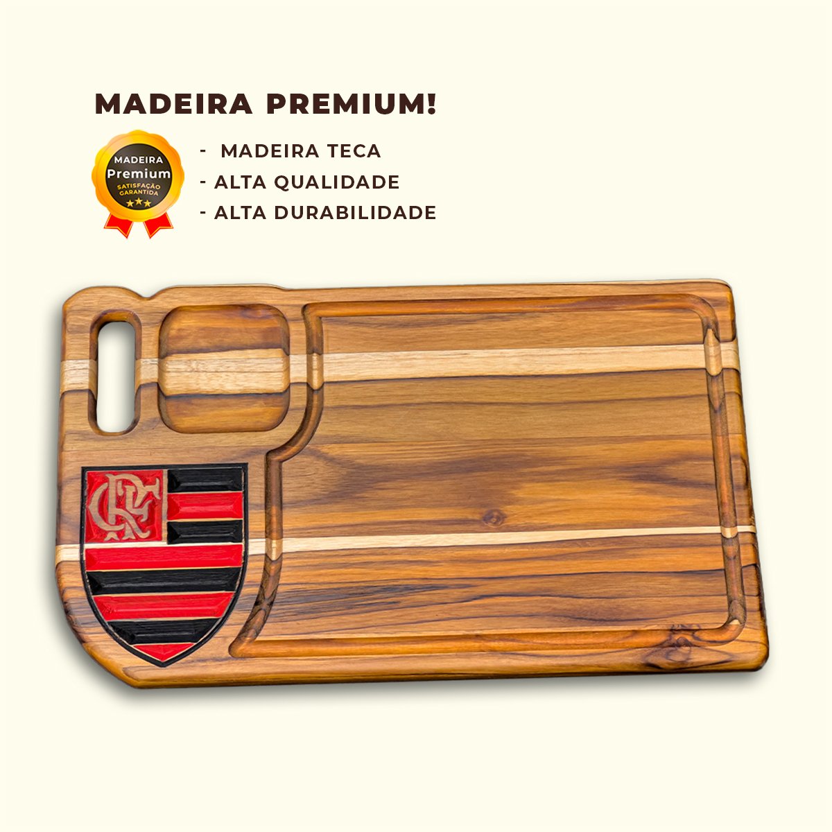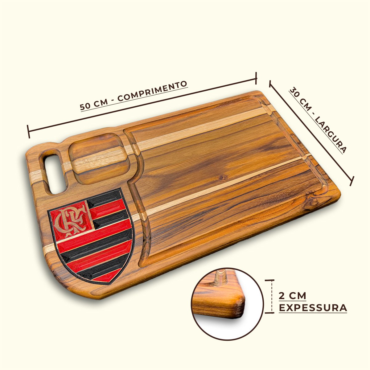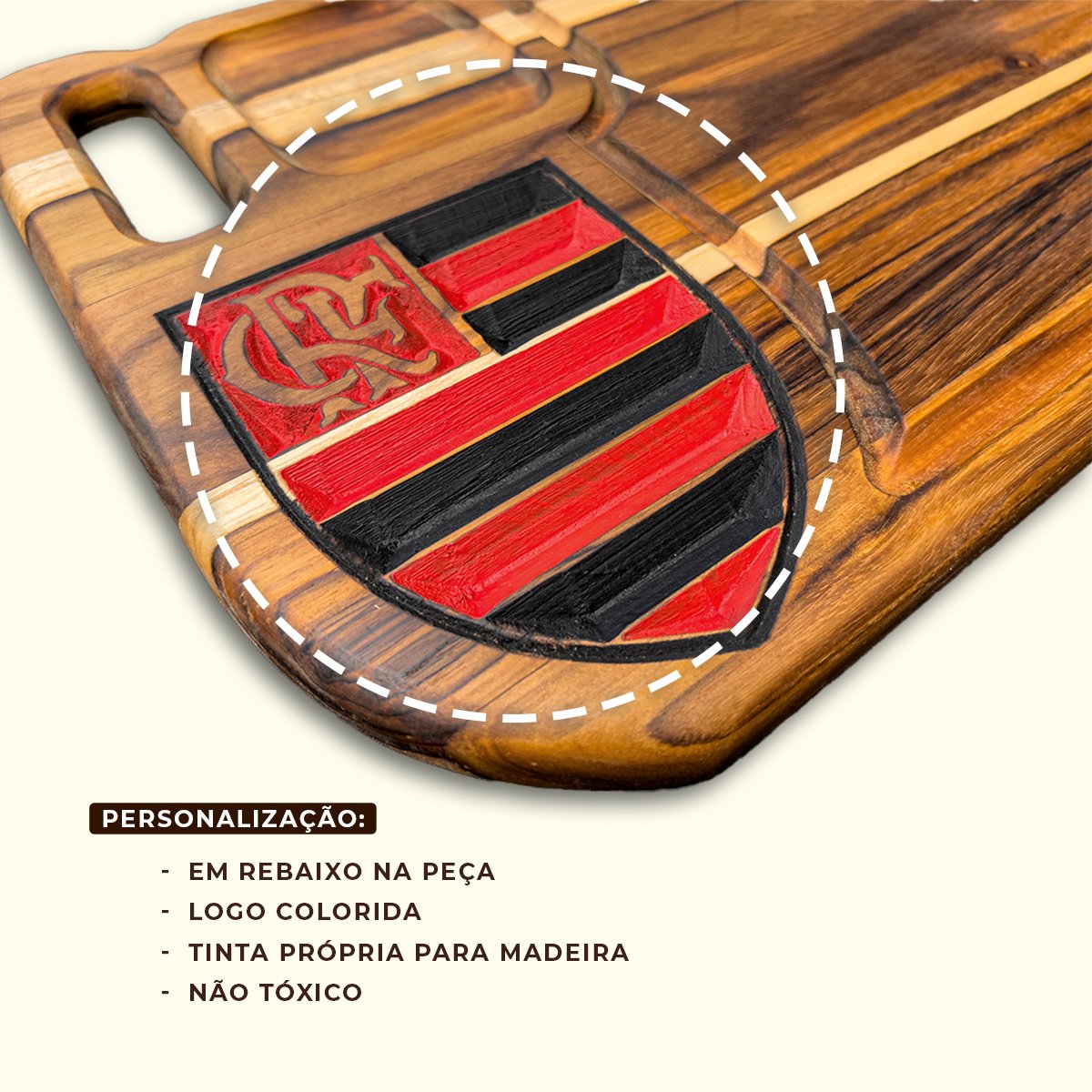 Leve a paixão pelo Flamengo para o seu churrasco! Apresentamos nossa tábua de carne em madeira premium, com o brasão do Flamengo gravado com precisão e um acabamento de tirar o fôlego. Esta peça não é apenas funcional, mas também uma forma única de expressar seu amor pelo Mengão em qualquer ocasião.